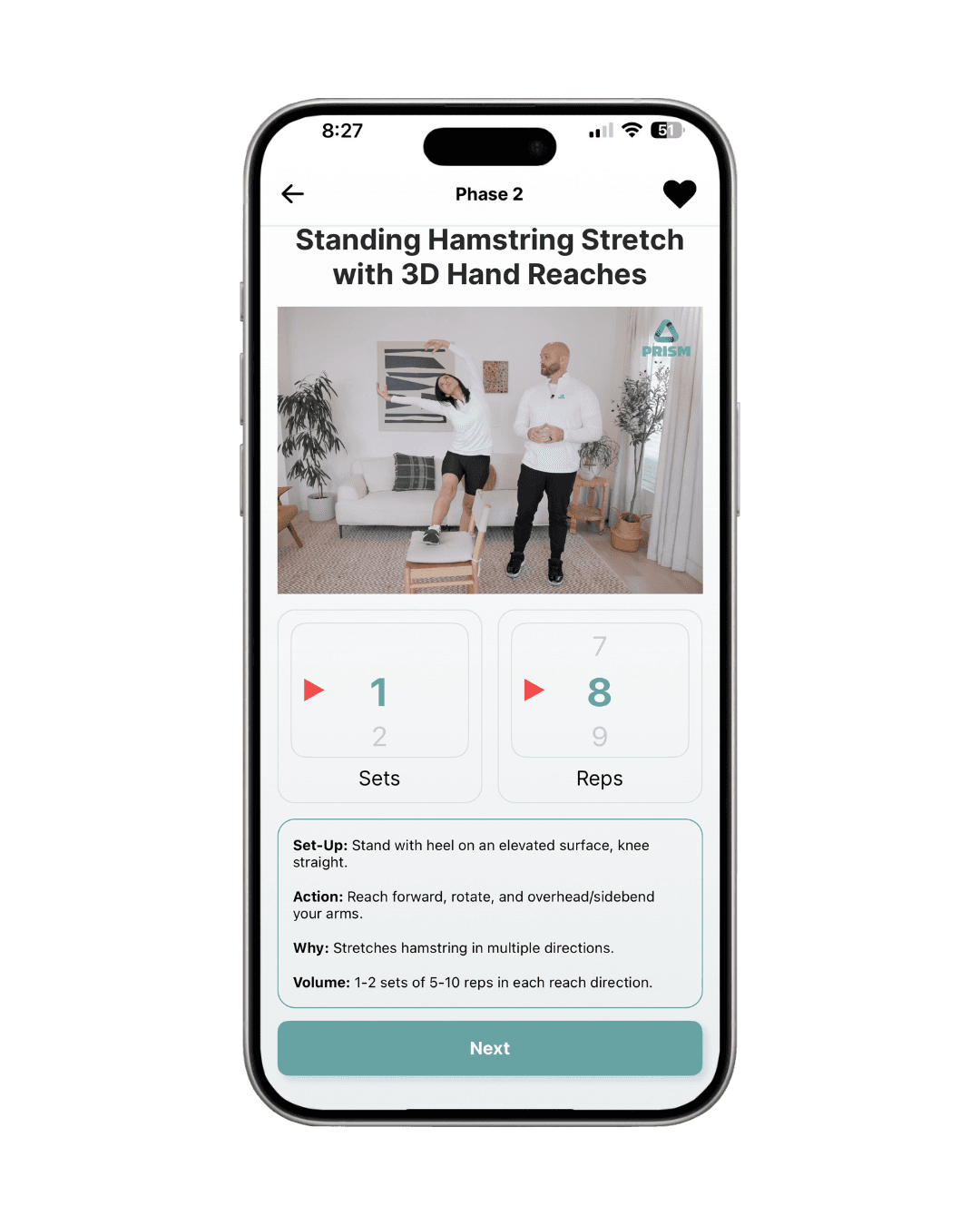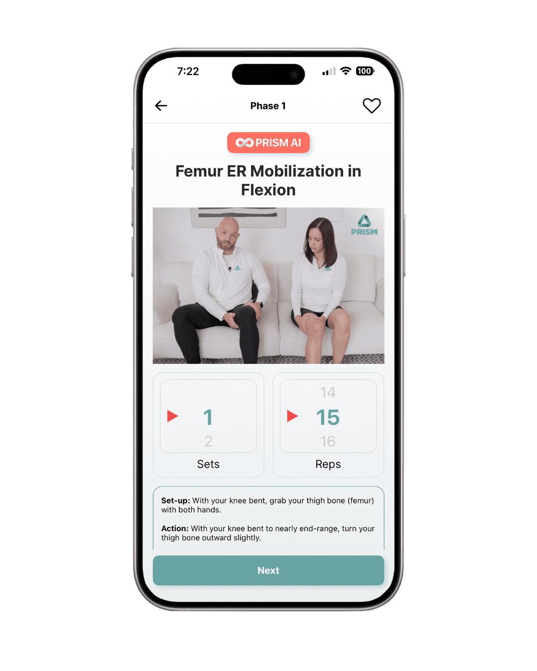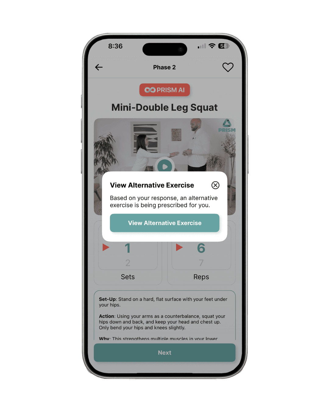 PRISM personalizes your program in real-time—based on your pain, difficulty, and how much exercise you complete.